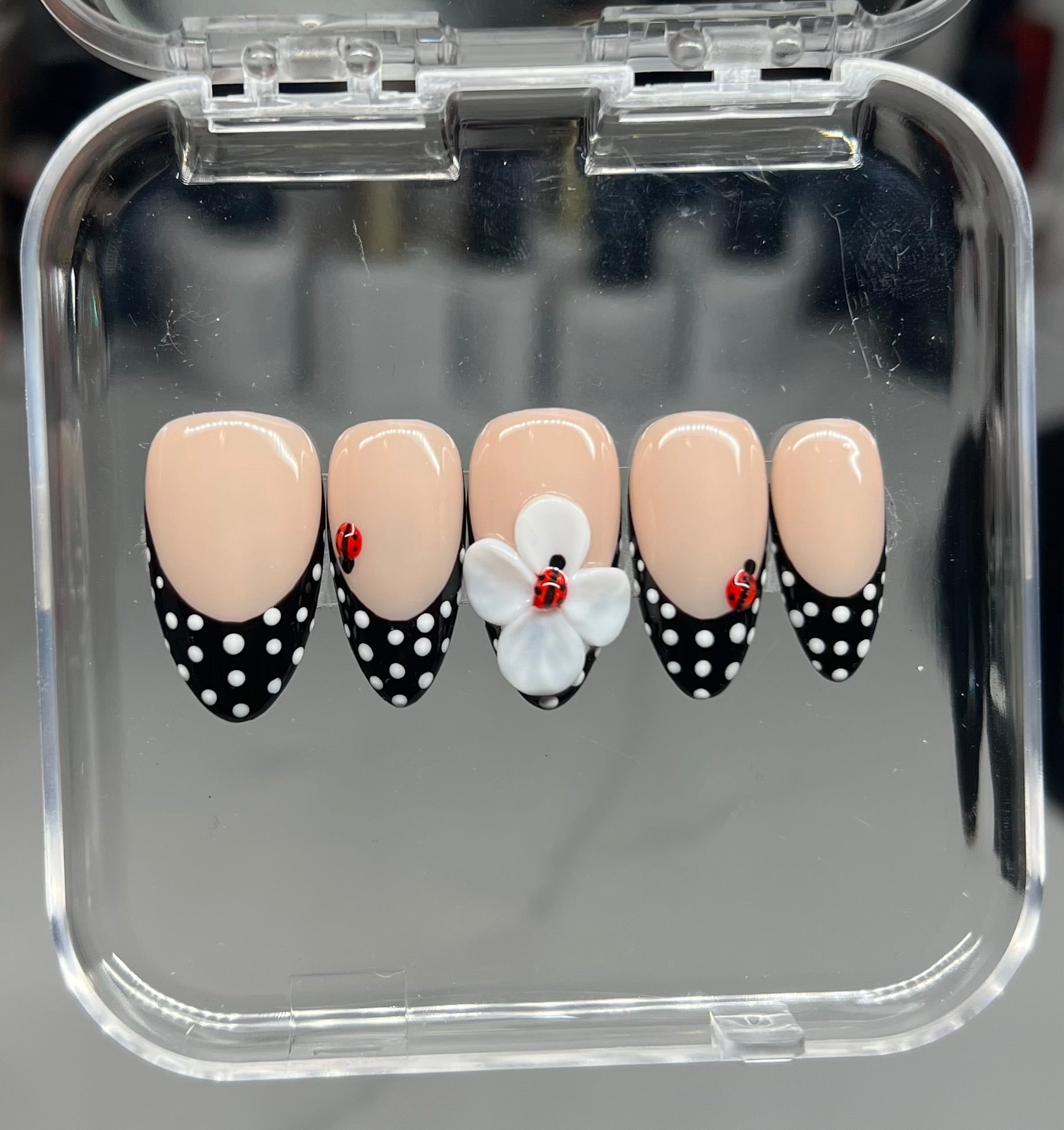 This set is all about polka dots and ladybugs with a white 3D flower.